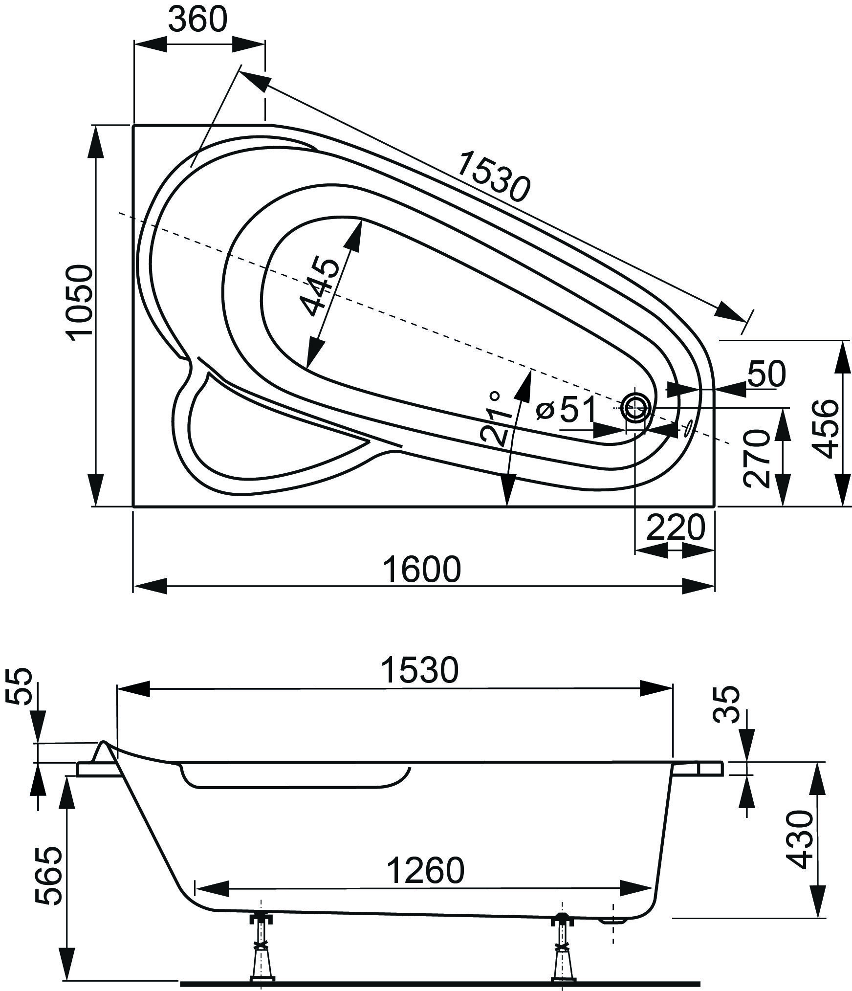 Наименование: Акриловая ванна VAGNERPLAST SELENA 160x105 Left;