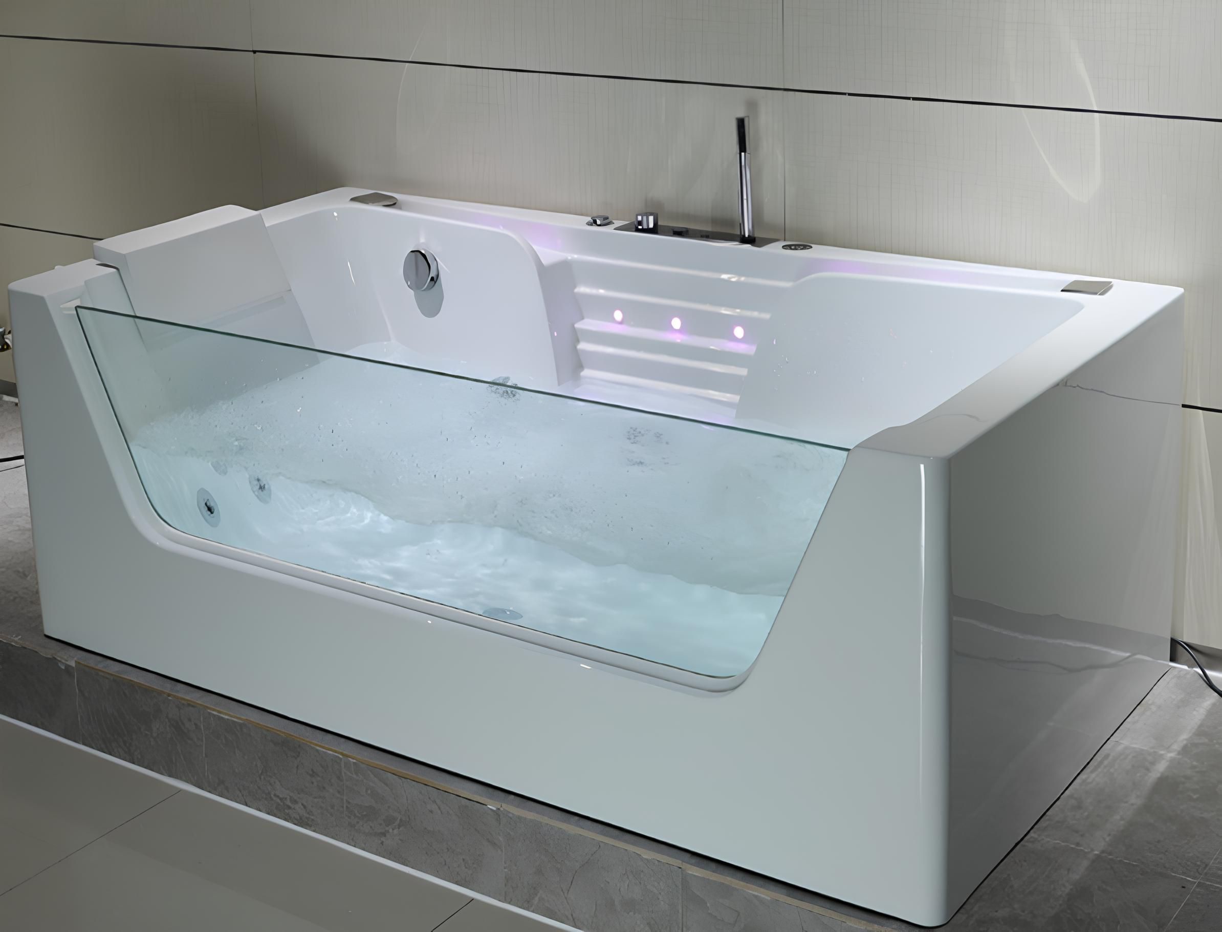 Современная акриловая гидромассажная ванна Ceruttispa C-477-18 – выполнена из 100% акрила и закаленного стекла. Ударопрочное стекло толщиной 12 мм без металлической окантовки безопасно и придает ванне современный дизайн.удобна и безопасна. Дно с антискользящим покрытием предупреждает падения. С помощью пульта удобно управлять функциями гидромассажной ванны.