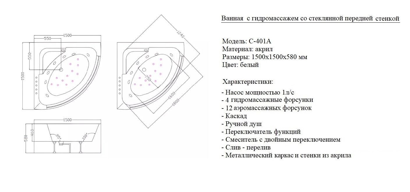 Современная акриловая гидромассажная ванна Ceruttispa C-401А – выполнена из 100% акрила и закаленного стекла. Ударопрочное стекло толщиной 10 мм без металлической окантовки безопасно и придает ванне современный дизайн.