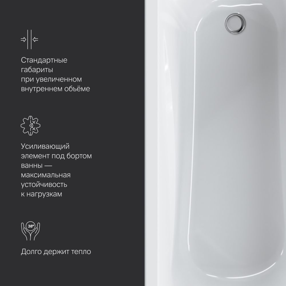 Дополнительные аксессуары для ванн Sense: каркас W76A-170-070W-R фронтальная панель W76A-170-070W-P и слив-перелив W90A-000-OFI - приобретаются отдельно. ""