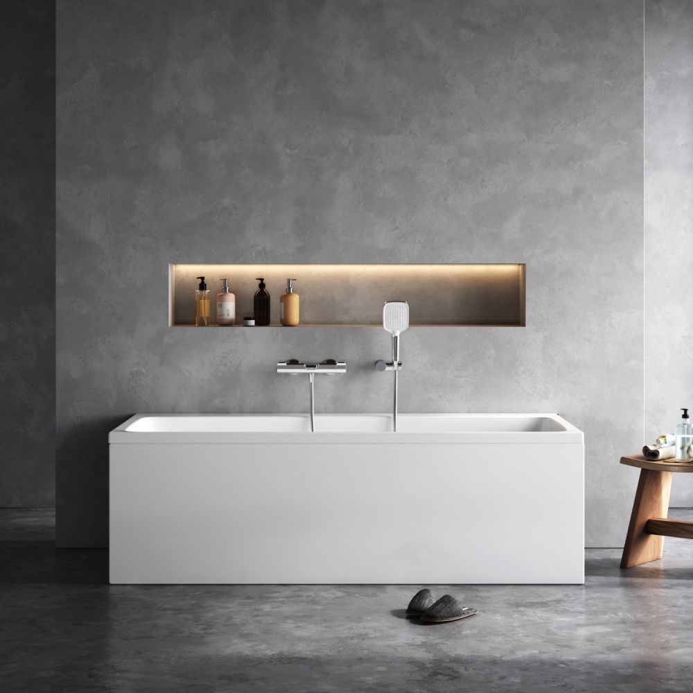Широкий борт с одной стороны ванны добавляет дополнительное пространство для хранения. Теперь даже самое небольшое помещение может быть использовано оптимальным образом.