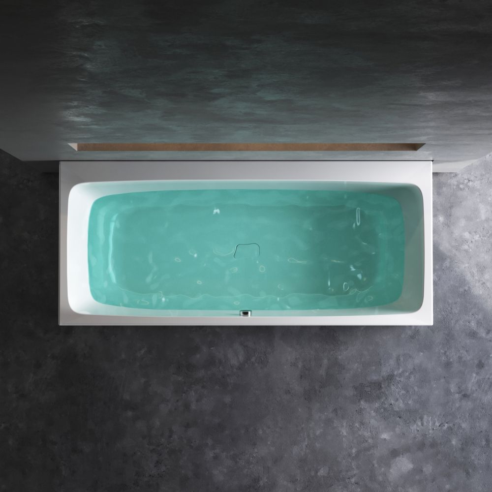 Характерный дизайн: сочетание широкого борта с одной стороны с ультра-тонким бортом с другой стороны создает неповторимую квинтэссенцию стиля. А декоративная заглушка слива повторяющая форму самой ванны станет яркой деталью в интерьере.