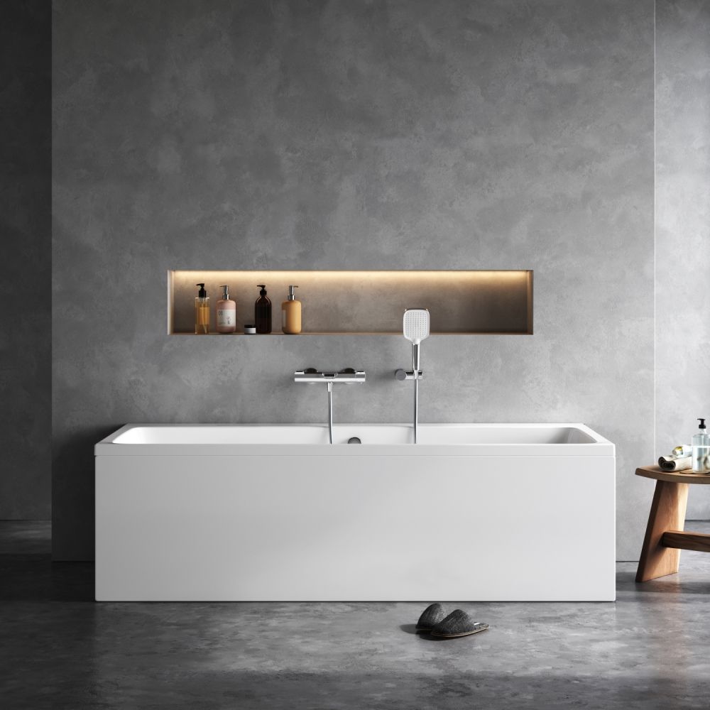 Широкий борт с одной стороны ванны добавляет дополнительное пространство для хранения. Теперь даже самое небольшое помещение может быть использовано оптимальным образом.