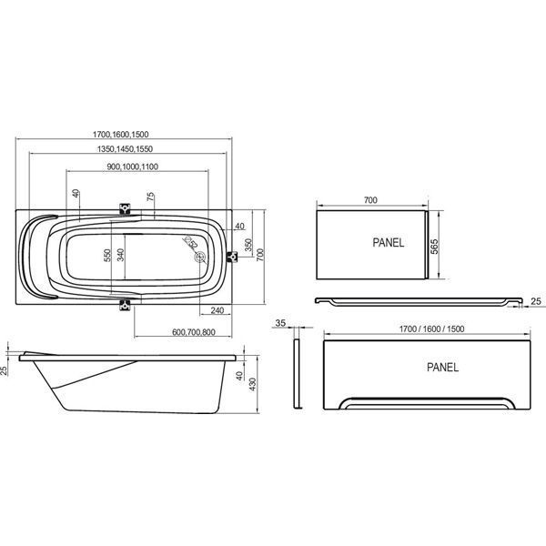 Передняя панель A U для ванн Ravak Classic, Vanda II 160 |
