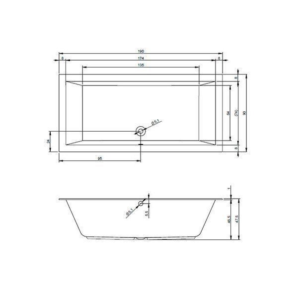 Свойства. Ванна изготовленна из высококачественного акрила. Цвет - белый. Форма - прямоугольная. Габаритные размеры (ДхШхВхГ), см: 190х90х47.5х46.5