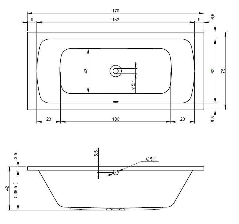 Свойства. Ванна изготовленна из высококачественного акрила. Цвет - белый. Форма - прямоугольная. Габаритные размеры (ДхШхВхГ), см: 170х75