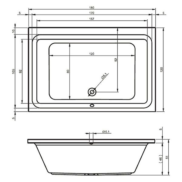 Свойства. Ванна изготовленна из высококачественного акрила. Цвет - белый. Форма - прямоугольная. Габаритные размеры (ДхШхВхГ), см: 180х120х51х46