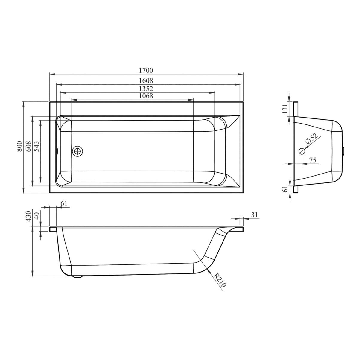 Свойства. Ванна выполнена из высококачественного акрила белого цвета. Габаритные размеры (ДхШхВ), см: 170х80х43. Объем, л 235; Коллекция Catani; Материал акрил; Толщина изделия, мм 6; Форма прямоугольная; Цвет белый; Покрытие дна гладкое; Гарантия 20 лет.