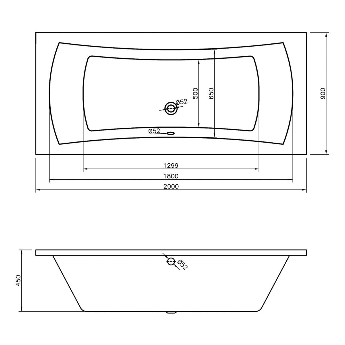 Свойства. Ванна выполнена из высококачественного акрила белого цвета. Габаритные размеры (ДхШхВ), см: 200х90х45. Объем, л 275; Коллекция Evan; Материал акрил; Толщина изделия, мм 6; Форма прямоугольная; Цвет белый; Покрытие дна гладкое; Гарантия 20 лет.