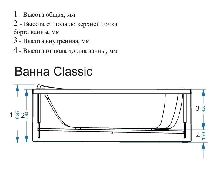 Свойства. Материал: акрил; Бренд: Domani-Spa; Серии: Classic; Форма: Прямоугольная; Длина: 170 см; Ширина: 70 см; Цвет: Белый.