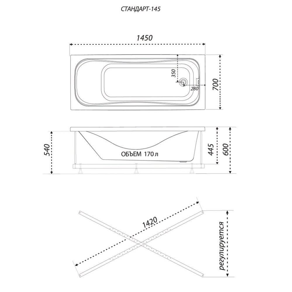 Акриловые ванны Triton Стандарт Экстра - прямоугольная классическая модель, подойдёт к любому стилю ванной комнаты. Широкий выбор размеров.