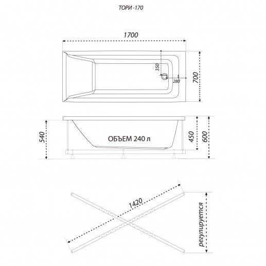 Свойства. Производитель: Triton; Коллекция: Тори; Страна бренда: Россия; Длина, см: 170; Ширина, см: 70; Высота, см: 60; Глубина, см: 45; Применение: Бытовая; Материал: Акрил; Слив перелив: приобретается отдельно; Подсветка: нет; Ручки: установка не предусмотрена; Сиденье в комплекте: нет; Хромотерапия: нет; Стиль: Современный; Тип установки: встраиваемая; Толщина листа, см: 0,5; Форма: Прямоугольная; Подголовник: приобретается отдельно; Цвет: Белый; Подлокотники: нет; Модификация: универсальная; Отверстие под перелив: стандартное; Озонирование: нет; Объём, л: 240; Ножки: приобретаются отдельно; Количество человек: 1; Каркас: в комплекте; Диаметр слива, см: 5,2; Дезинфекция: нет; Гидромассаж: нет; Гарантия: 10 лет; Аэромассаж: нет; Аромотерапия: нет; Антискользящее покрытие: да.
