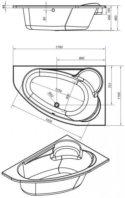 Свойства. Бренд: Cersanit; Коллекция: Kaliope; Тип: Акриловая ванна; Установка: Пристенная; Материал: Акрил; Ориентация: Правосторонняя; Длина, мм: 1700; Ширина, мм: 1100; Высота, мм: 460; Глубина, мм: 450; Объём (л): 340; Дизайн: Модерн; Форма: Асимметричная; Угловая конструкция: Да; Цвет: Белый; Число мест: 1; Фронтальная панель: Приобретаются отдельно; Отверстие под перелив: Есть; Устройство перелива: Приобретается отдельно; Расположение слива-перелива: По центру; Система гидромассажа: Установка не предусмотрена; Система аэромассажа: Установка не предусмотрена; Хромотерапия: Установка не предусмотрена; Подводная подсветка: Установка не предусмотрена; Антискользящее покрытие: Нет; Каркас: Приобретаются отдельно; Ножки: Приобретаются отдельно; Ручки: Установка не предусмотрена; Подголовник: Приобретается отдельно; Оснащение: Сиденье; Страна-производитель: Россия; Гарантия производителя: 10 лет; Вес в упаковке, кг: 37.5; Объём упаковки, м3: 0.104; Размер упаковки ДxШxВ, см: 170x113x49.