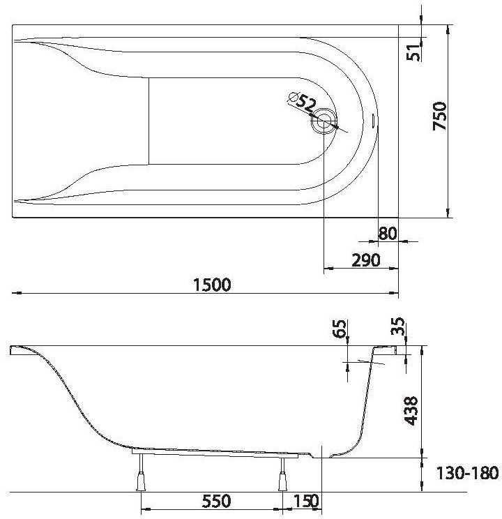 Свойства. Длина, см: 150; Ширина, см: 75; Глубина, см: 42; Объем воды, л: 179; Форма: Прямоугольная; Монтаж: Пристенный; Ориентация: Универсальная; Материал: Акрил; Цвет: Белый; Антискольжение: Нет; Количество мест в ванне: 1; Стилистика дизайна: Современный стиль; Сиденье: Нет; Слив-перелив/сифон: Нет; Каркас: Нет; Ножки: Есть; Ручки: Нет; Экран: Нет; Антигрязевое покрытие: Нет; Подлокотники: Нет; Подголовник: Нет; Окошко: Нет; Гидромассаж: Без гидромассажа.