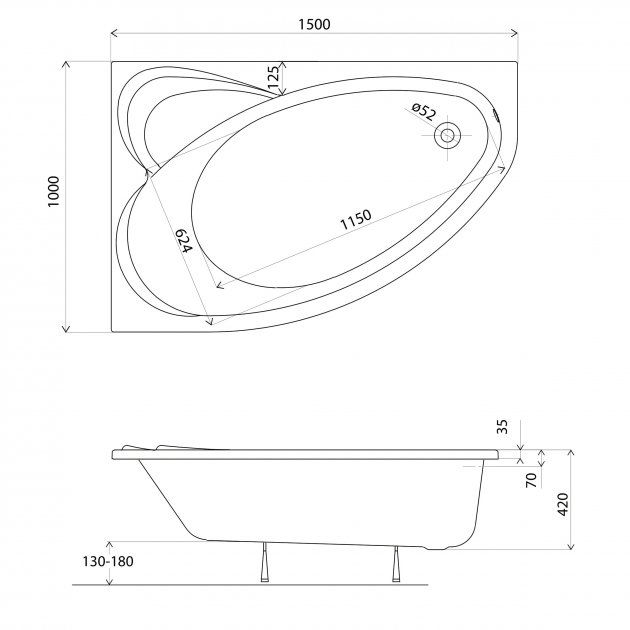 Свойства. Производитель: Kolo; Страна-производитель: Польша; Серия: Supero; Тип изделия: ванна; Форма: ассиметричная; Способ монтажа: пристенный; Размещение: правая; Материал: акрил; Ширина: 1000 мм; Длина: 1500 мм; Глубина: 400 мм; Ширина дна: 624 мм; Объем: 160 л; Цвет: белый; Ножки включены: да; Расположение слива: центральное отверстие по короткой стороне.