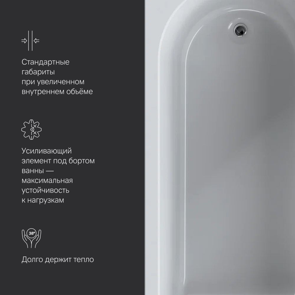За счет низкой теплопроводности и теплоемкости акрила ванна поддерживает температуру набранной воды.