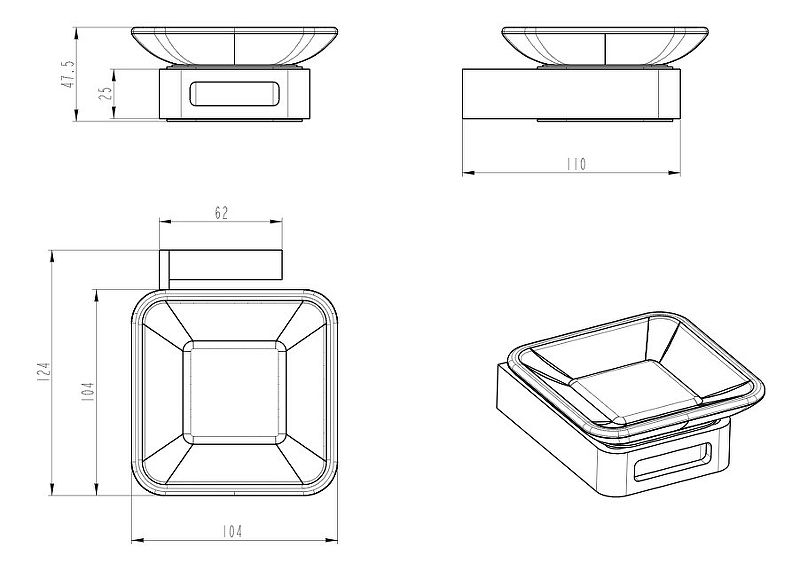 - Размер (ШхГхВ): 104х124х48 мм.