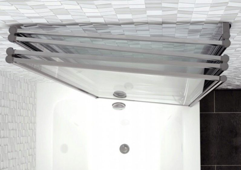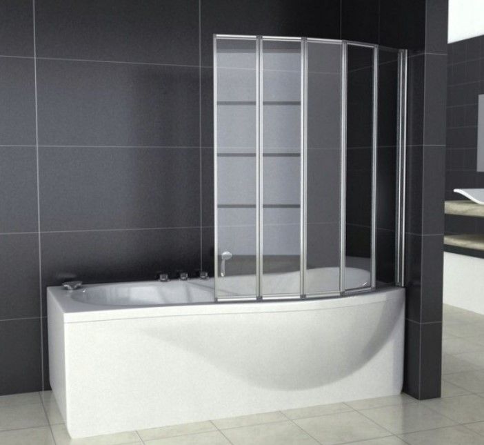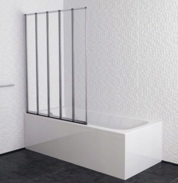 Свойства. Ширина мм: 1200; Высота мм: 1400; Толщина стекла мм: 4; Материал: закаленное стекло; Конструкция: складная, 5 секций; Установка: левая или правая; Профиль: алюминий, цвет хром; Покрытие стекла: Easy Clean; Стекло: прозрачное.