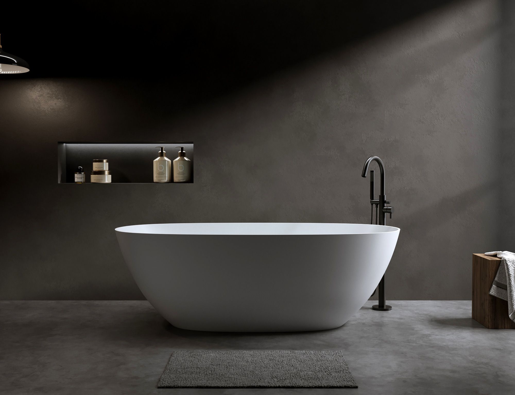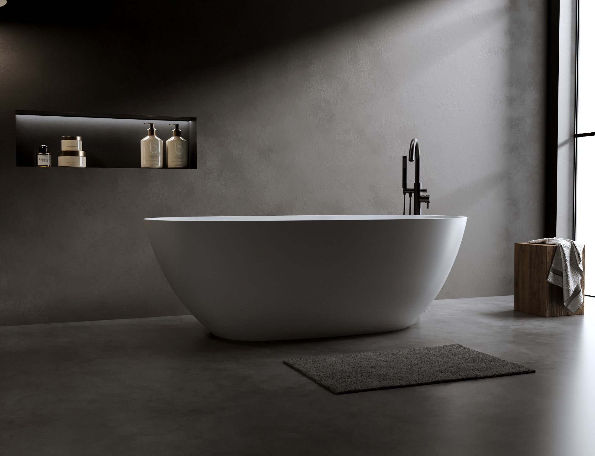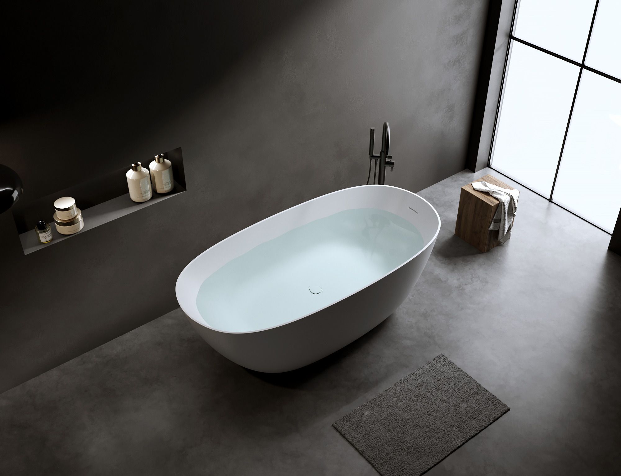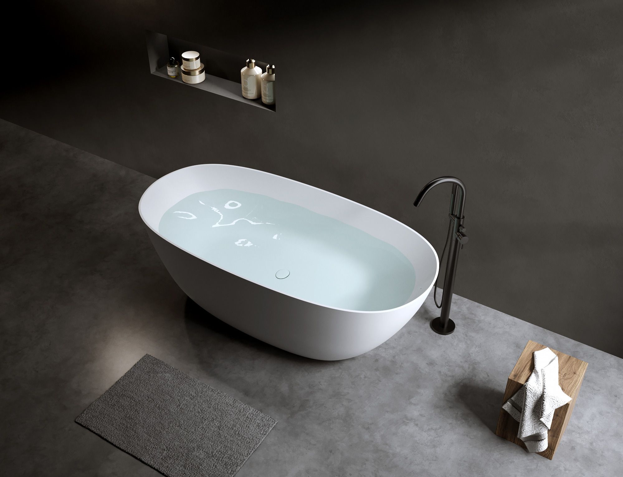 Поверхность ванны приятная на ощупь и не холодная благодаря низкому уровню теплопроводности, что делает процесс эксплуатации очень приятным.