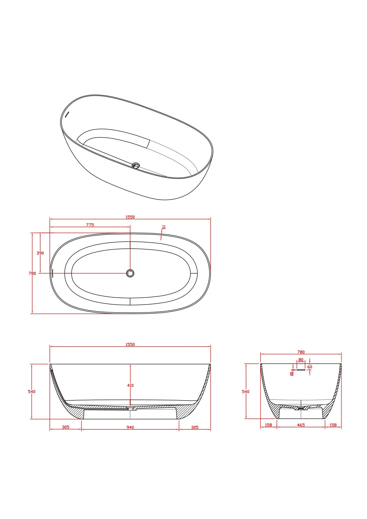 Поверхность ванны приятная на ощупь и не холодная благодаря низкому уровню теплопроводности, что делает процесс эксплуатации очень приятным.
