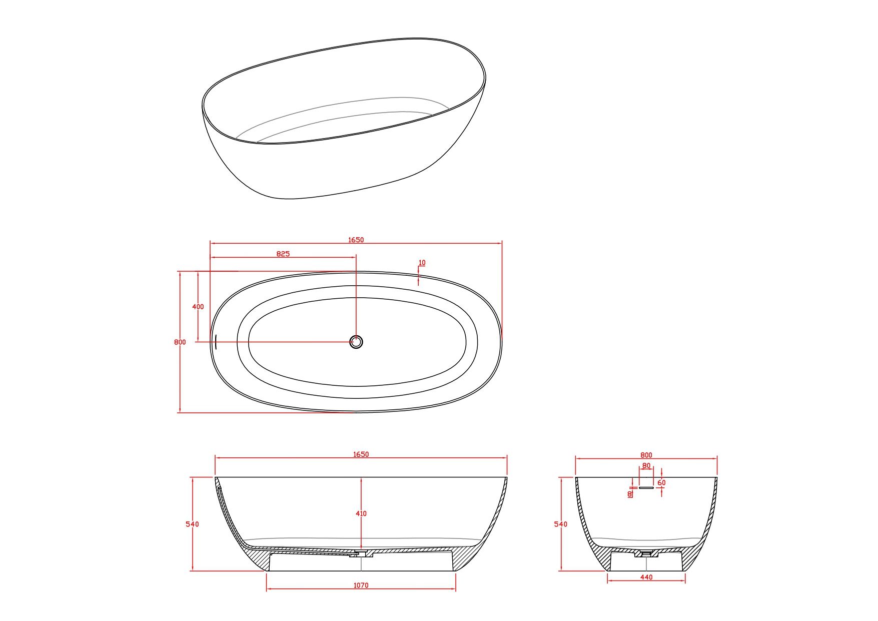 Поверхность ванны приятная на ощупь и не холодная благодаря низкому уровню теплопроводности, что делает процесс эксплуатации очень приятным.