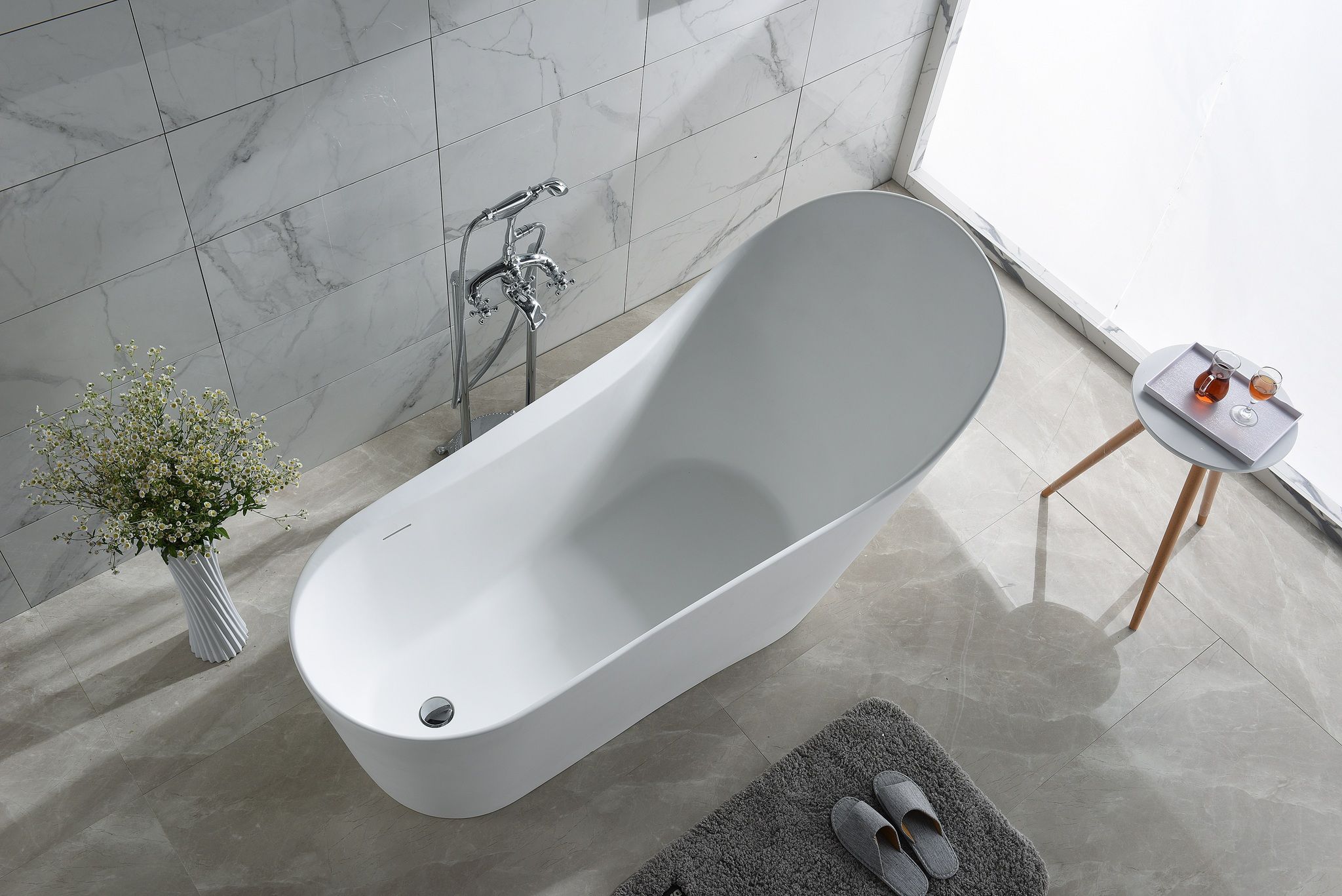 Поверхность ванны приятная на ощупь и не холодная благодаря низкому уровню теплопроводности, что делает процесс эксплуатации очень приятным.