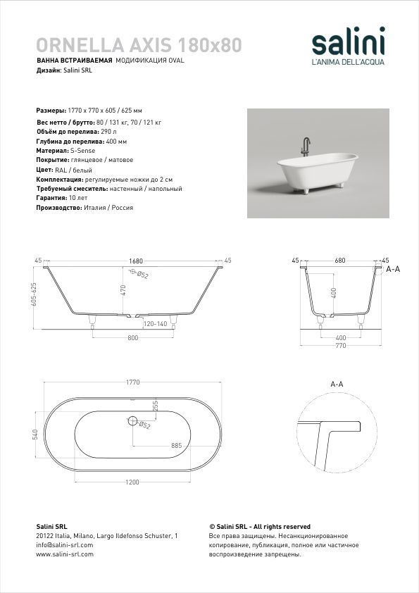 - Комплектация: ванна, регулируемые ножки до 2 см