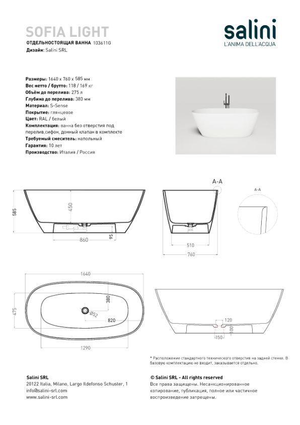При габаритах 165х75 см SOFIA LIGHT будет идеальным вариантом как для больших, так и для маленьких ванных комнат, где одинаково важны чистые линии и повседневная практичность. Эта модель идеально подойдёт как для расположения у стены, так и для размещения в центре комнаты.