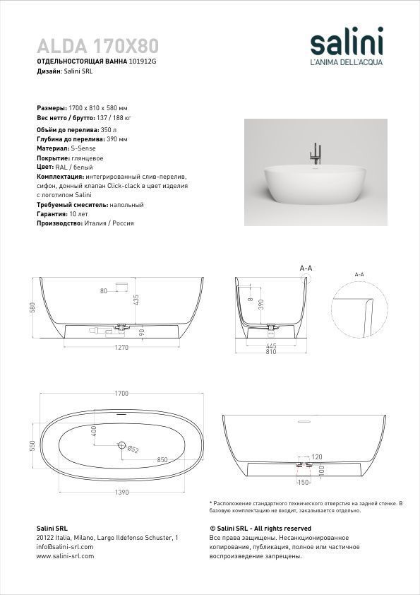ALDA — прекрасное дополнение к ассортименту ванн.